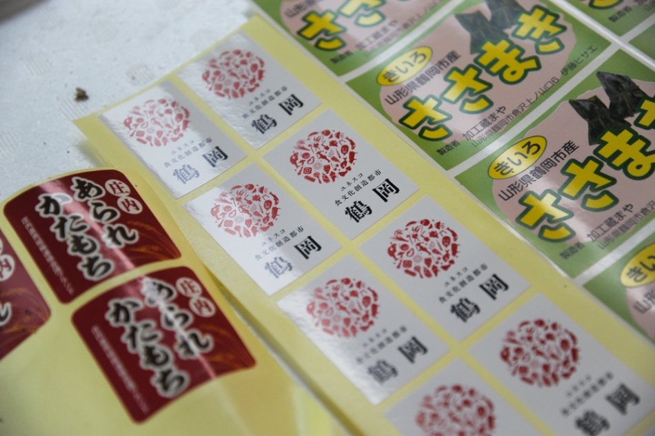 商品には食文化創造都市のシールを貼っている