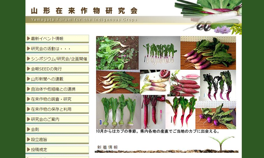 山形在来作物研究会のウェブサイト