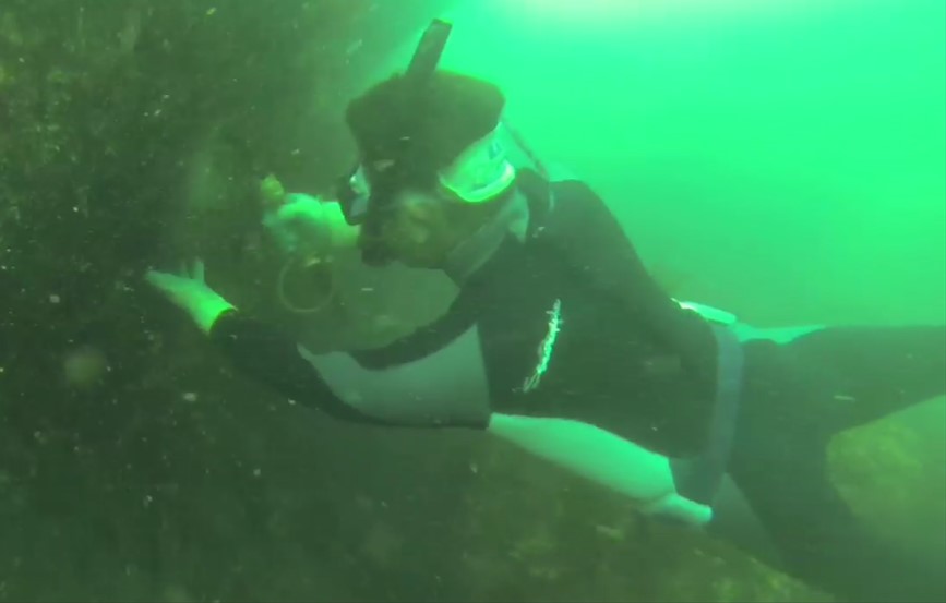 素潜りで岩ガキを獲る隼人さん(提供:ゆらまちっく戦略会議)