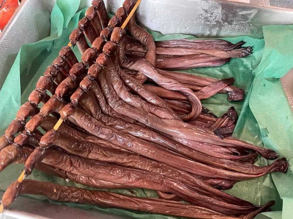 この「由良アナゴ」はアナゴといっても正式名称を「キタクロヌタウナギ」といい、アナゴではなく、味・食感もアナゴには似ていません。ぶつ切りにして焼くとコリコリとした食感と弾力、皮目の香ばしさにこってりとしたコクのある旨味で栄養価も高く、7~9月頃にしか味わえない庄内の希少な夏のスタミナ食としても人気があります。
