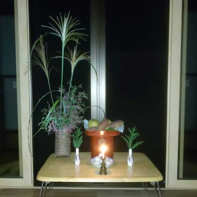 9月15日(旧暦の8月15日)頃の「豆名月(芋名月)」と呼ばれる十五夜に、「いもごぼたもち」と野菜や果物をお供えして、収穫を感謝します。また、10月15日(旧暦9月13日)頃の「栗名月」と呼ばれる十三夜にも、「いもごぼたもち」と野菜や果物をお月様にお供えして、収穫を感謝します。
