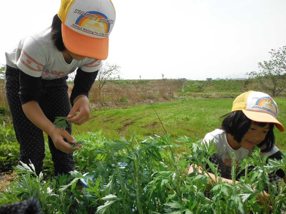 この頃、家の周りの竹林で孟宗筍がとれるため、孟宗汁を作ります。孟宗汁は鶴岡の全域で食べられる春を代表する郷土食で、孟宗筍の他にしいたけや油揚げ(一般的には「厚揚げ」のことを鶴岡では「油揚げ」といいます)を加え、酒粕と味噌で仕立てます。中に入れるものは家庭によって違いますが、山田家では孟宗、しいたけ、油揚げのみです。また、よもぎの葉を近所に摘みにでかけ、草餅を作ります。