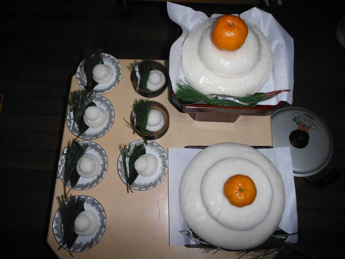 作ったひし餅を飾る山田千枝さんとお孫さんたち