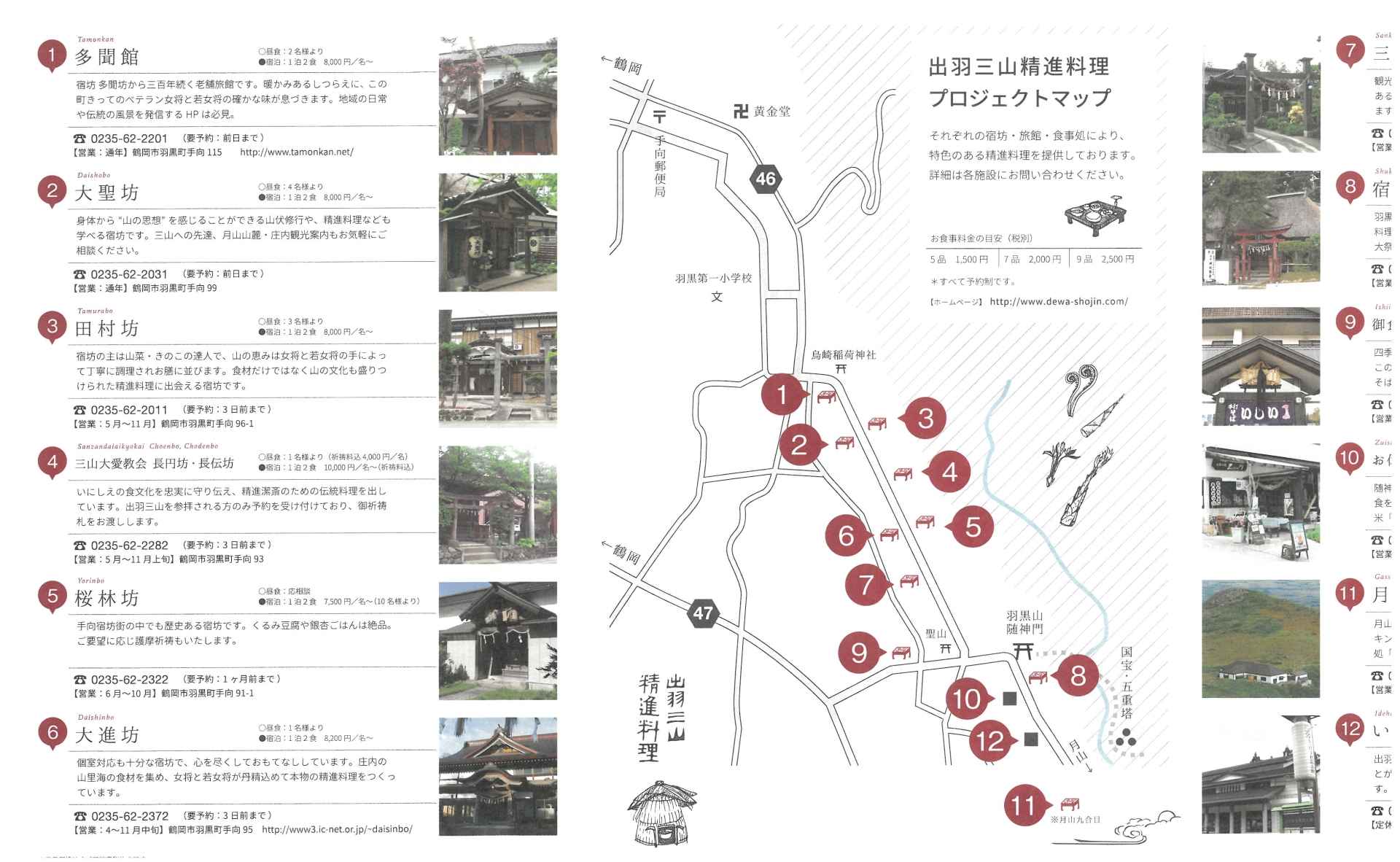 2011年10月、フランスのパリとハンガリーのブダペストで行ったデモンストレーションで精進料理が好評だったことを契機に、2012年5月に手向地域の宿坊、旅館、茶屋、山小屋などの担い手たちにより「出羽三山精進料理プロジェクト」を立ち上げました。伝統の出羽三山精進料理を正しく受け継ぐとともに、精進料理の提供や情報発信を通じて出羽三山精進料理とその背景にある出羽三山の歴史や信仰・文化を広く国内外に伝えていくこを目的に活動を始めました。