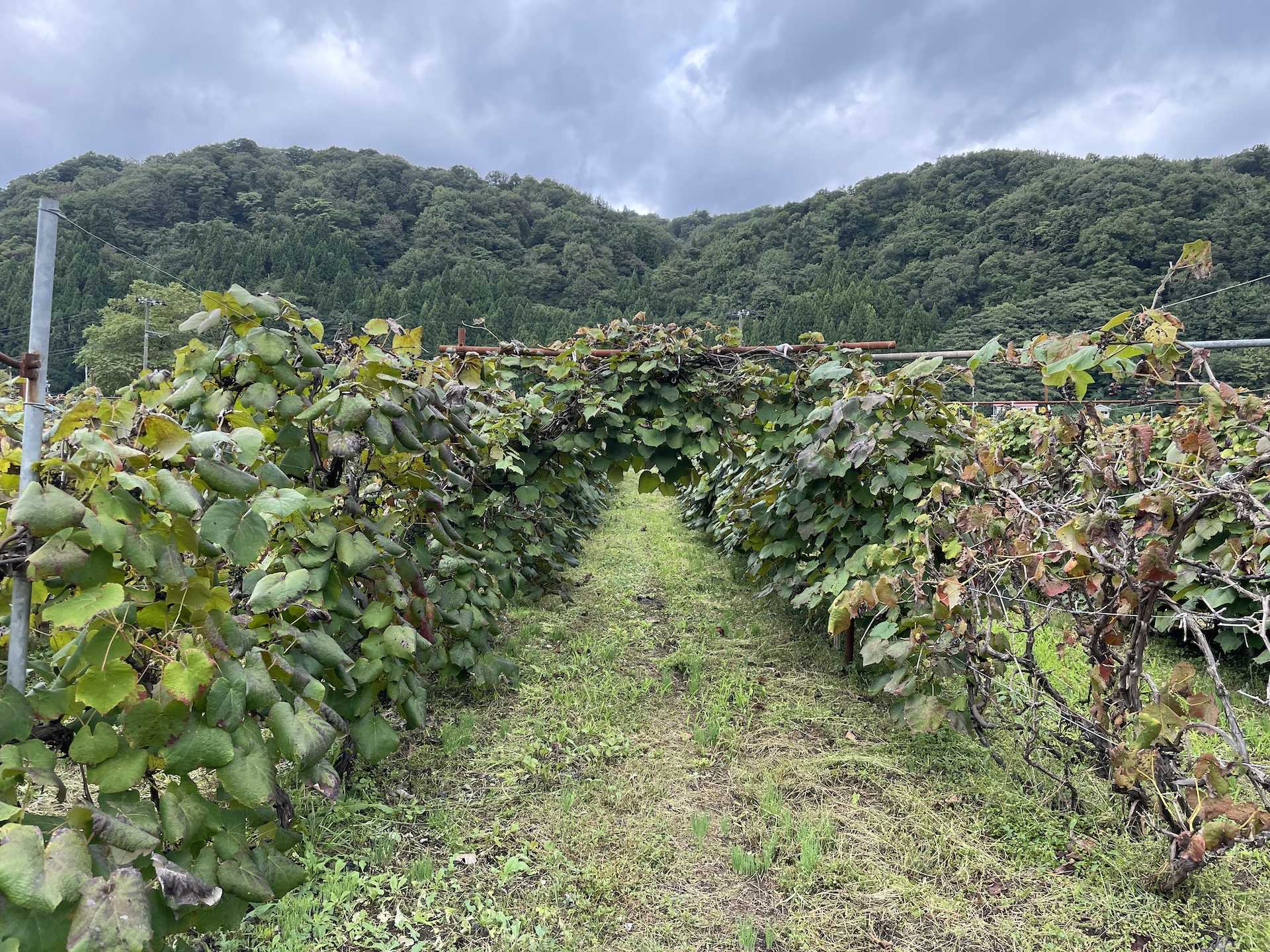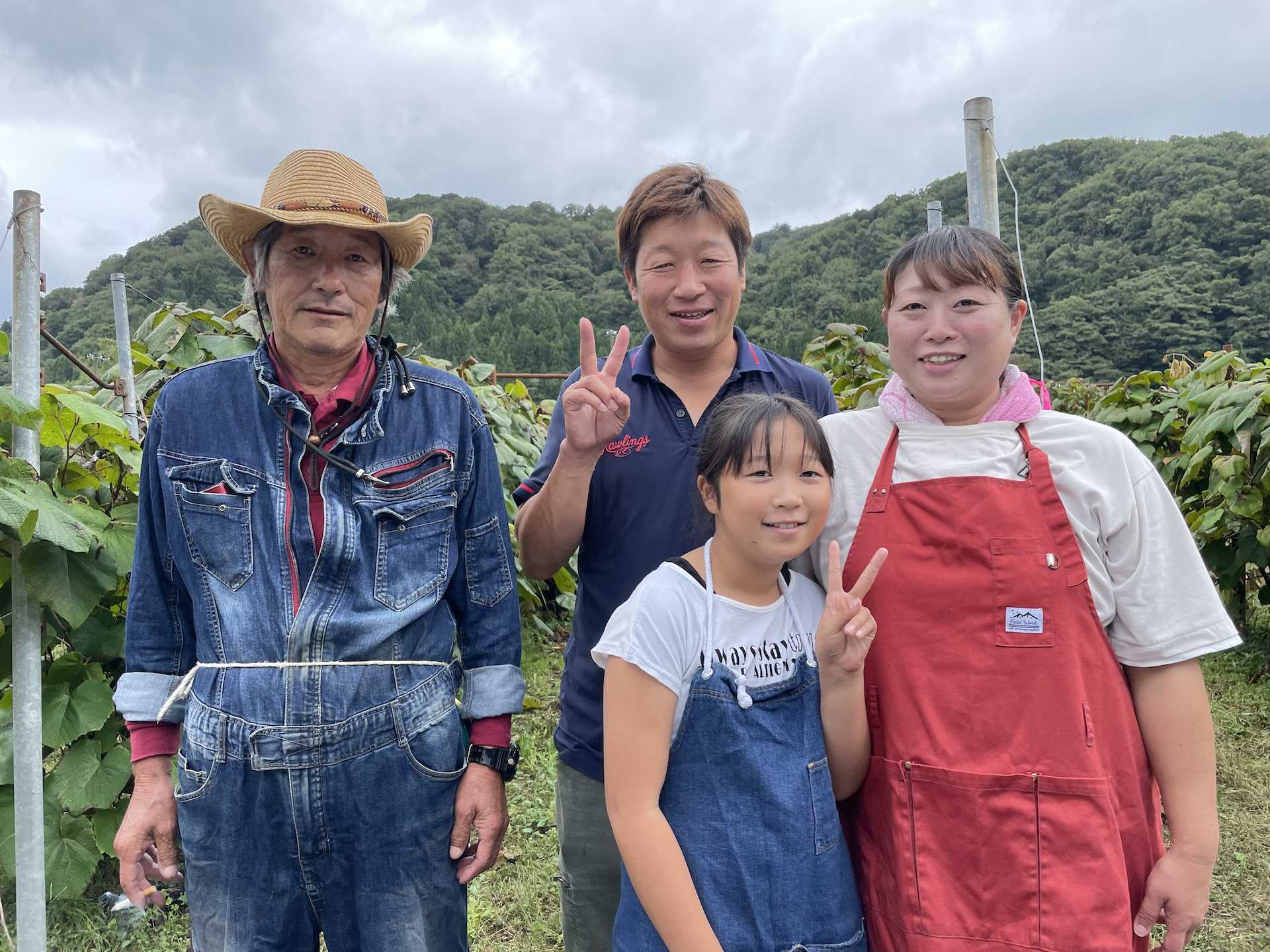 なんば農園では、裕一さんの祖父の代の1975年頃に、山で自生していたヤマブドウを自分の畑に植えたことから栽培が始まりました。ちょうど旧朝日村をあげてヤマブドウの栽培を始めた頃です。