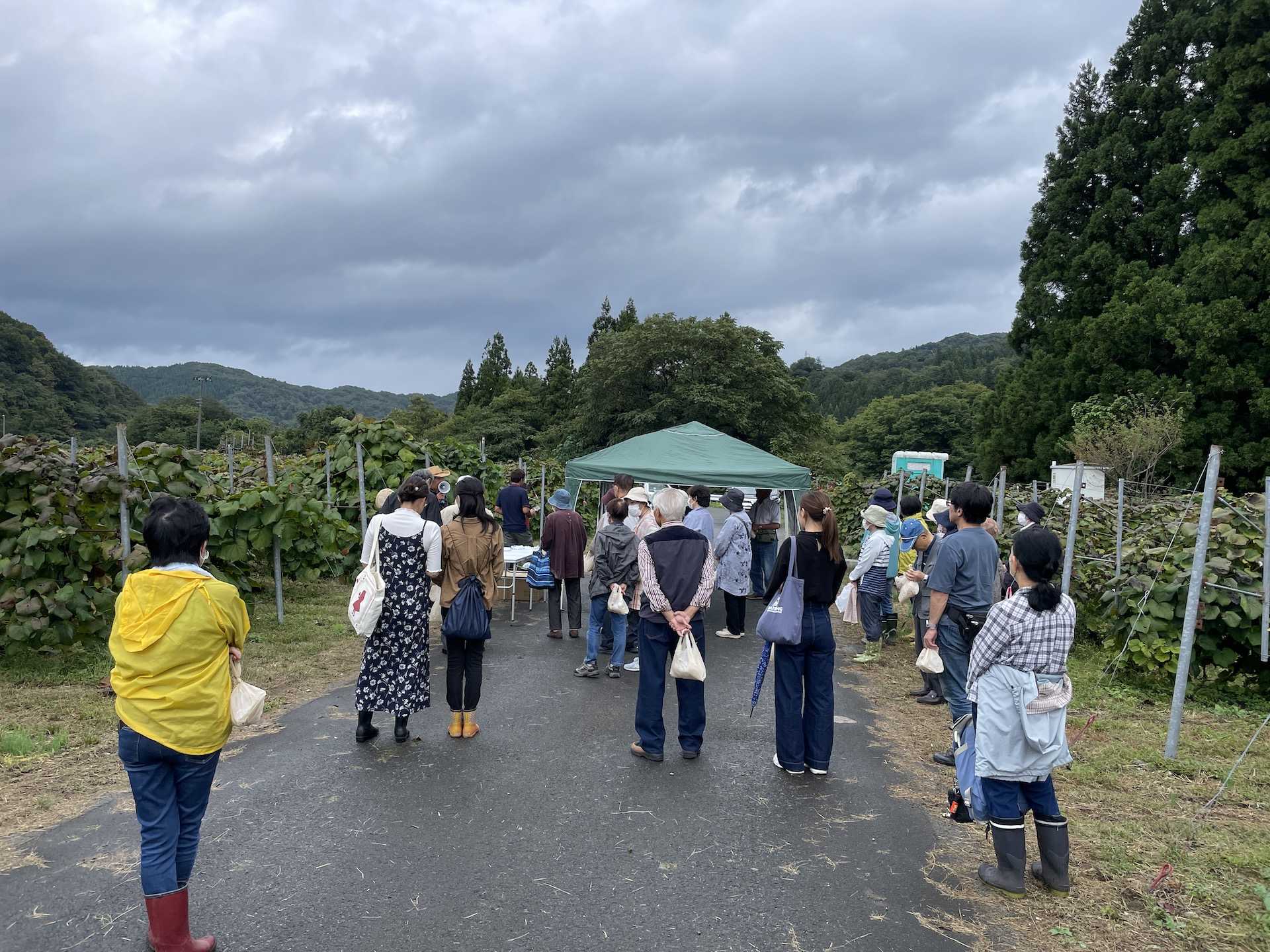 なんば農園では2012(平成24)年に鶴岡食文化女性リポーター(※)に参加してもらい首都圏からのツアー「鶴岡伝統作物に出会う旅」を実施しました。これにより地元の宝としてのヤマブドウの認知度が向上しました。ちょうどこの頃からヤマブドウの収穫体験を定期的に始め、それは今も続いており、地元だけでなく首都圏からも毎年参加を楽しみにしている人がいるといいます。中にはなんば農園のヤマブドウでないとダメだというお客さんもいるほど。