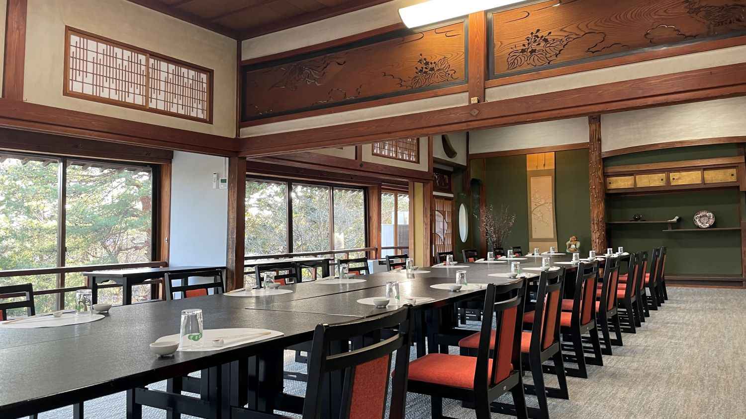 新茶屋といえば、1階の大広間に面した470坪の広い庭園と樹齢数百年を経た老松が訪れる者の目を惹き、新茶屋の歴史を感じることができます。