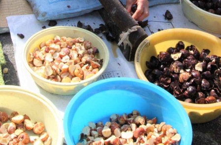 産直あさひ・グーでは、蒸したまごや煮豆などの郷土料理も並びます。また、とちもちや笹巻(※)も年中手に入れることができます。山菜は春でなくても、乾物や塩蔵品の保存食として提供しています。これらの保存食はていねいに時間をかけて作られたものです。先人たちの知恵が今もここで受け継がれているのです。