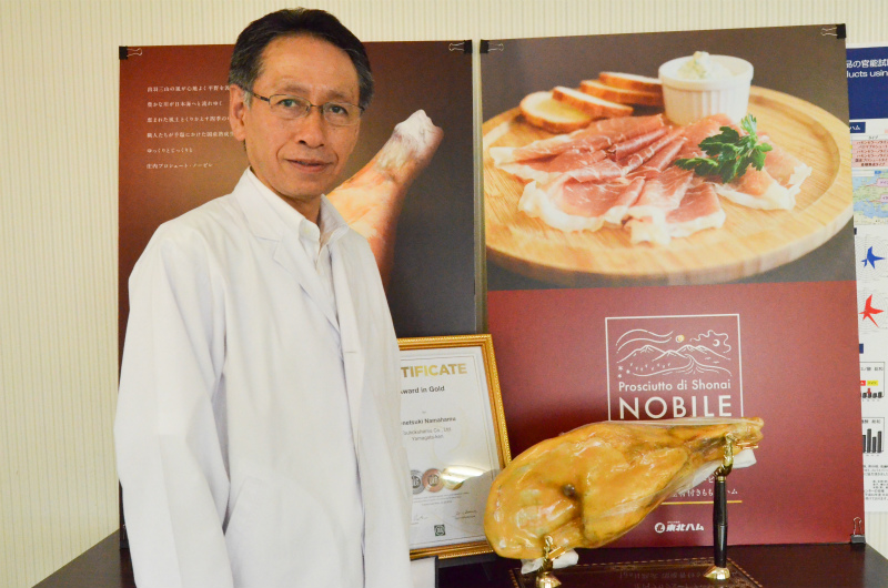 鶴岡市内で昭和9年に創業した東北ハムは、東北地方の中でも畜肉加工業界では草分け的存在です。東北ハムはこれまで数々のコンクールで賞を受賞していますが、一番最近では、2018年のドイツ農業振興協会(DLG)のDLG国際品質競技会にて、無添加生ハム、庄内プロシュート「ノービレ」が金賞を受賞しました。帯谷社長に、こだわりと取り組みについてお聞きしました。