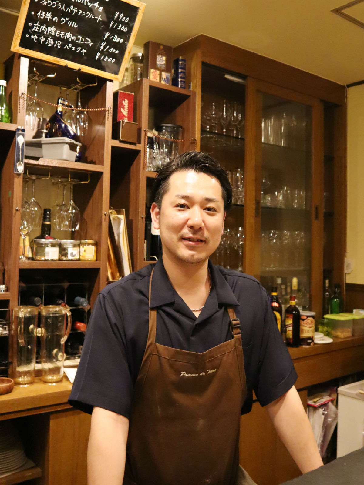 幼い頃のフランス料理との出会いをきっかけに、高校卒業と同時に酒田市ル・ポットフーに入社、その後酒田市内のレストランや東京・仙台での調理経験を経て、2012年に再び庄内へ。2016年にPomme de Terreをオープン。市の料理人研修派遣制度を利用し、2017年2月にスペイン・ビルバオ市、2018年11月にスペイン・バレンシア市での研修にも積極的に参加。
