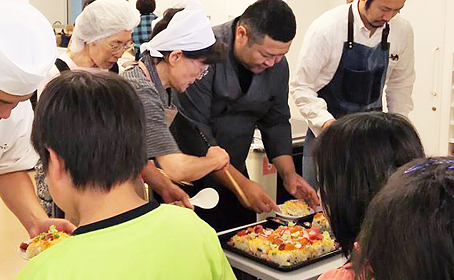 ひとり親家庭の支援を目的に鶴岡市母子会が中心になって運営している「子ども食堂」に、市内料理人と生産者で組織する「FOOD人材BANK(※1)」としてボランティア参加しています。