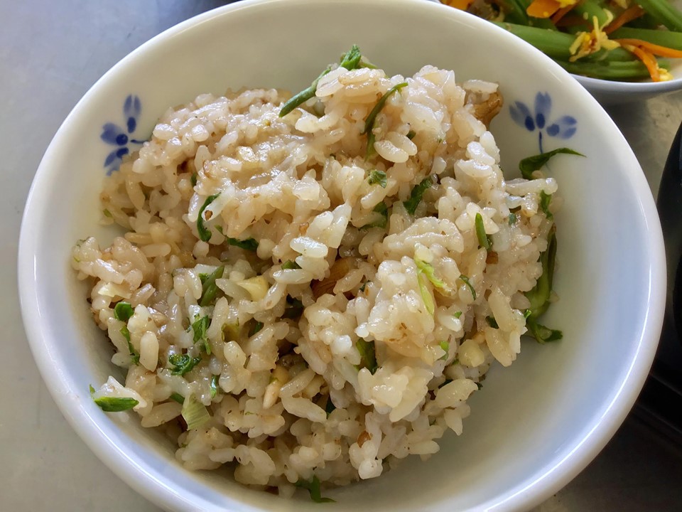 ◎炊き上がったごはんに残りのくるみと刻んだこしあぶらを加えて混ぜる。