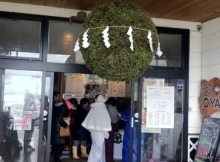 大山商工会入口には新酒ができたことを知らせる杉玉「酒林(さかばやし)」がつるしてありました。