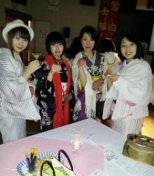 また、最近庄内着物女子※1のメンバーとの出会いもあり、着物で行ってみようよと提案してみた。着物姿で女性だけ、しかも今年初参加の2名加え、6名でいざ新酒まつりへ 。