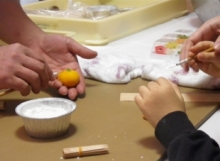今回初めて雛菓子作りを体験してみました。練りきりは白小豆、砂糖、求肥を混ぜたもの。求肥を入れることで上生菓子のベタっとした食感がでるそうです。鮮やかな色の練りきりは赤キャベツや紅花など自然なもので着色しています。