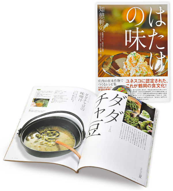 庄内地方の在来作物15種類を取り上げて、それぞれについて3つずつ計45レシピを掲載した書籍「はたけの味」を発刊いたしました。農家民宿「知憩軒」の長南光さん、みゆきさん親子ふたりによる、心にしみる郷土料理の味を紹介しています。