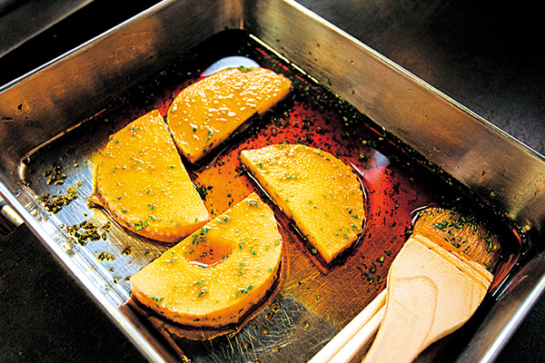 醤油の香ばしさと山椒の香りがくせになる、孟宗のステーキ風。